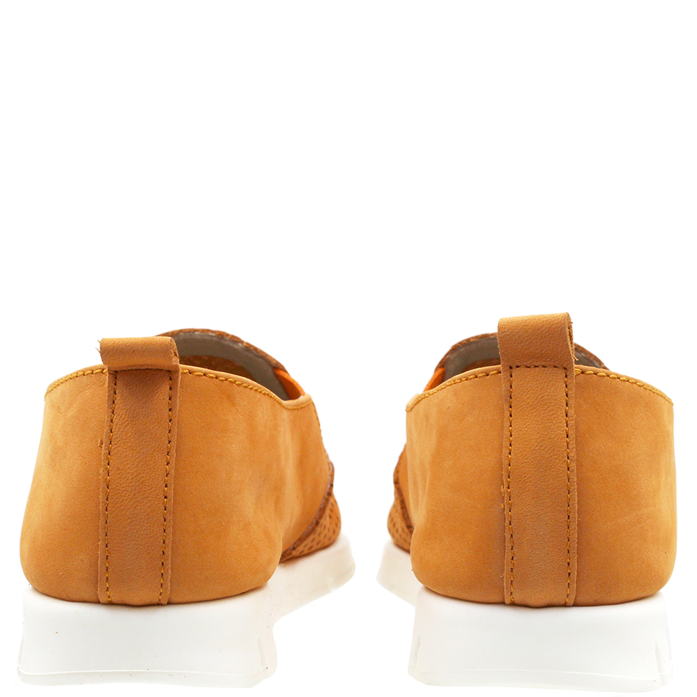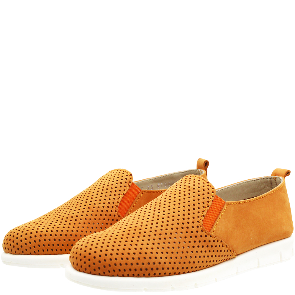 Aerobics Friend Perf Orange Nubuck Loafers are slip on part loafer part sneaker promising happy feet thanks to sublime comfort. With a seriously well cushioned, anatomic inner, hard wearing and flexible rubber outsole and an uber soft nubuck leather upper, your feet will be smiling in no time flat. So good, take her travelling or on a marathon shopping expedition. This orange is just the right dose of vitamin C. Handcrafted in Portugal.