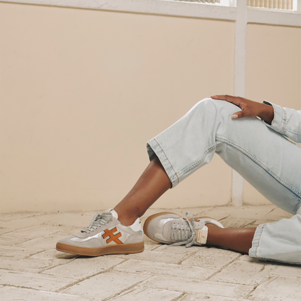 Silver sneakers with a retro twist. Step in, lace up and enjoy every single step. Pair with everything and wear with attitude.