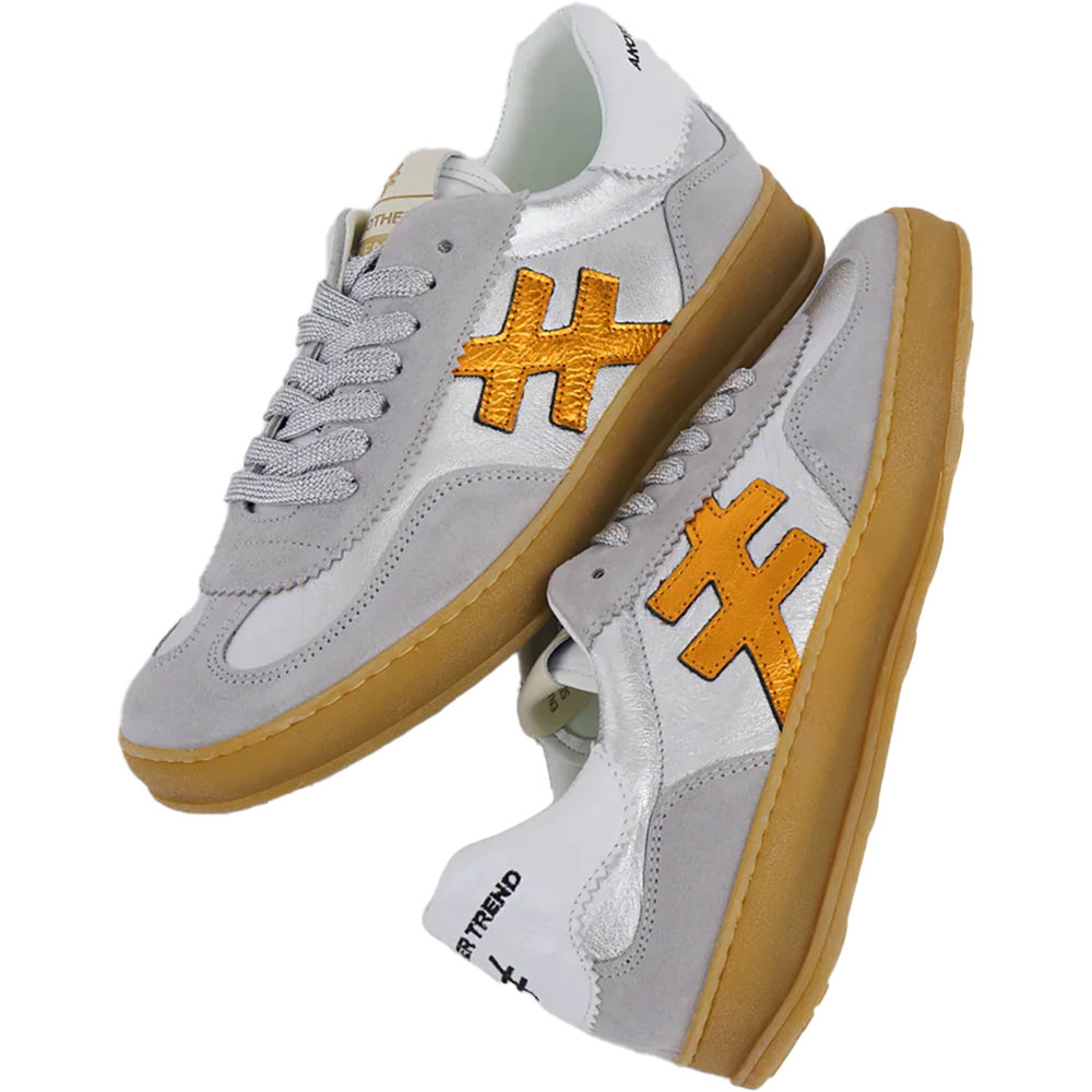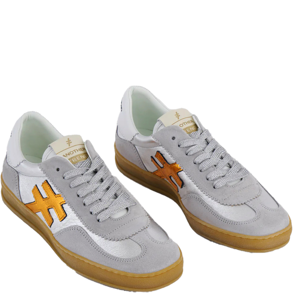 Another Trend Iconic II A032 Tortola Sneakers enhance your footwear collection. True to its legacy, the new Iconic features a sleek low-profile silhouette, a soft suede upper, and a flexible rubber sole, making it an essential sneaker for everyday wear.. With a slender profile, a soft padded insole which is removable (yep, these are orthotic taking sneakers) , and padding at the heel, work, play or travel, this is your sneaker. That soft silver grey is gorgeously off-set with the metallic orange accents and glittery laces. Crafted in Spain