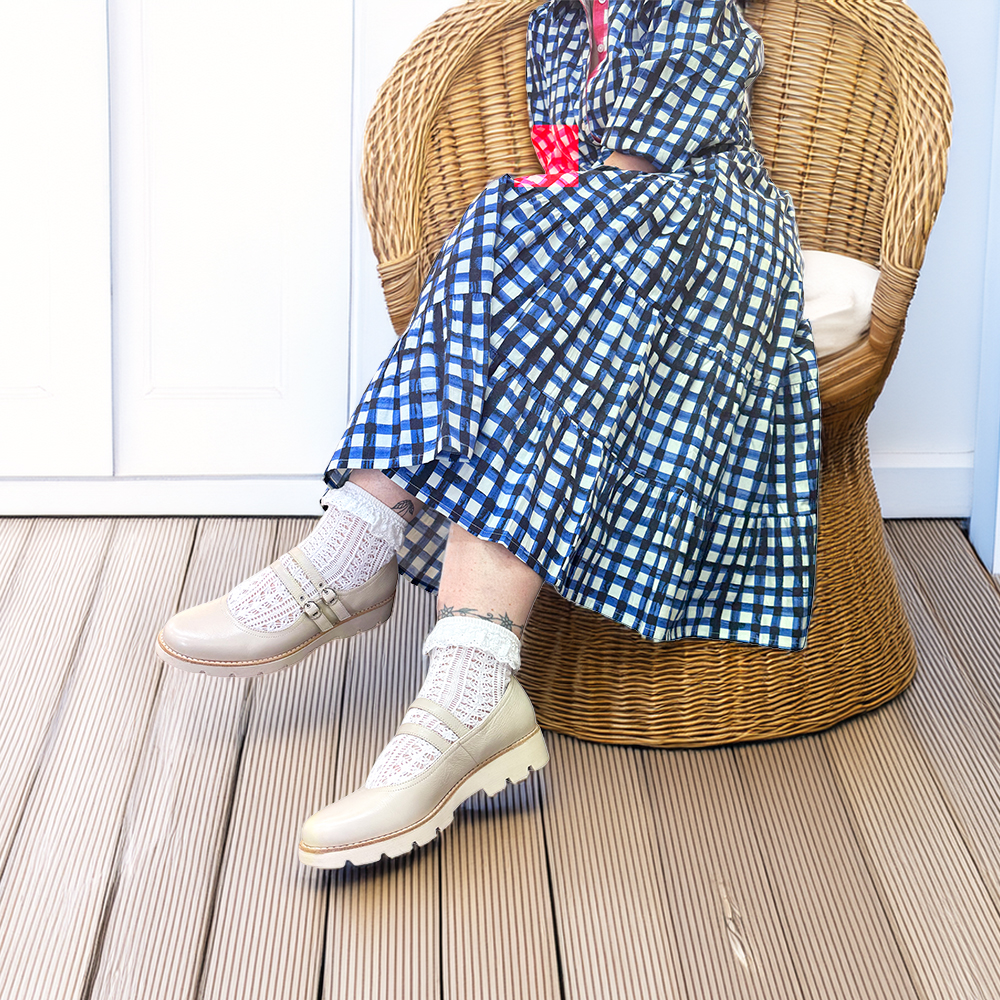 Dabbie gives you just the lift you need. Buttery soft and so easy to wear, pair with dresses to denims. The creamy vanilla colour is sooooo wearable. Work or weekend, this mary jane just works.