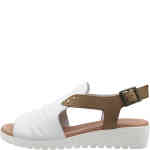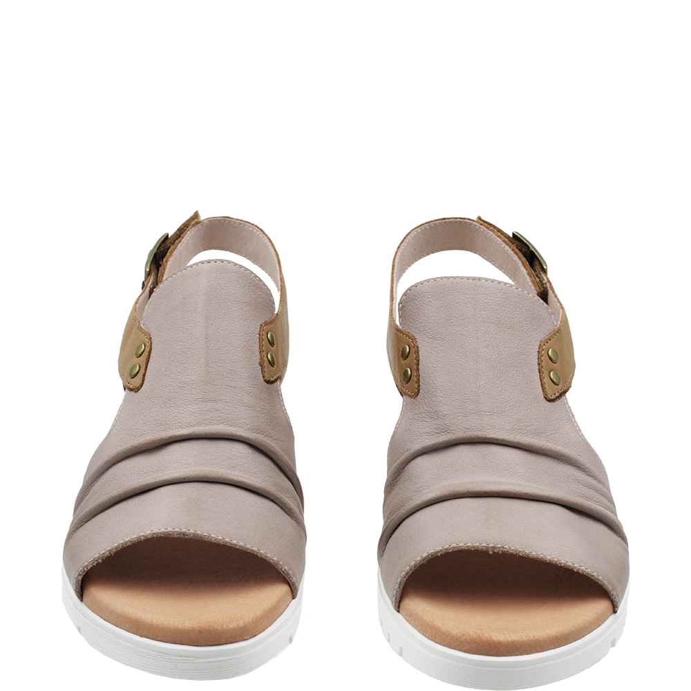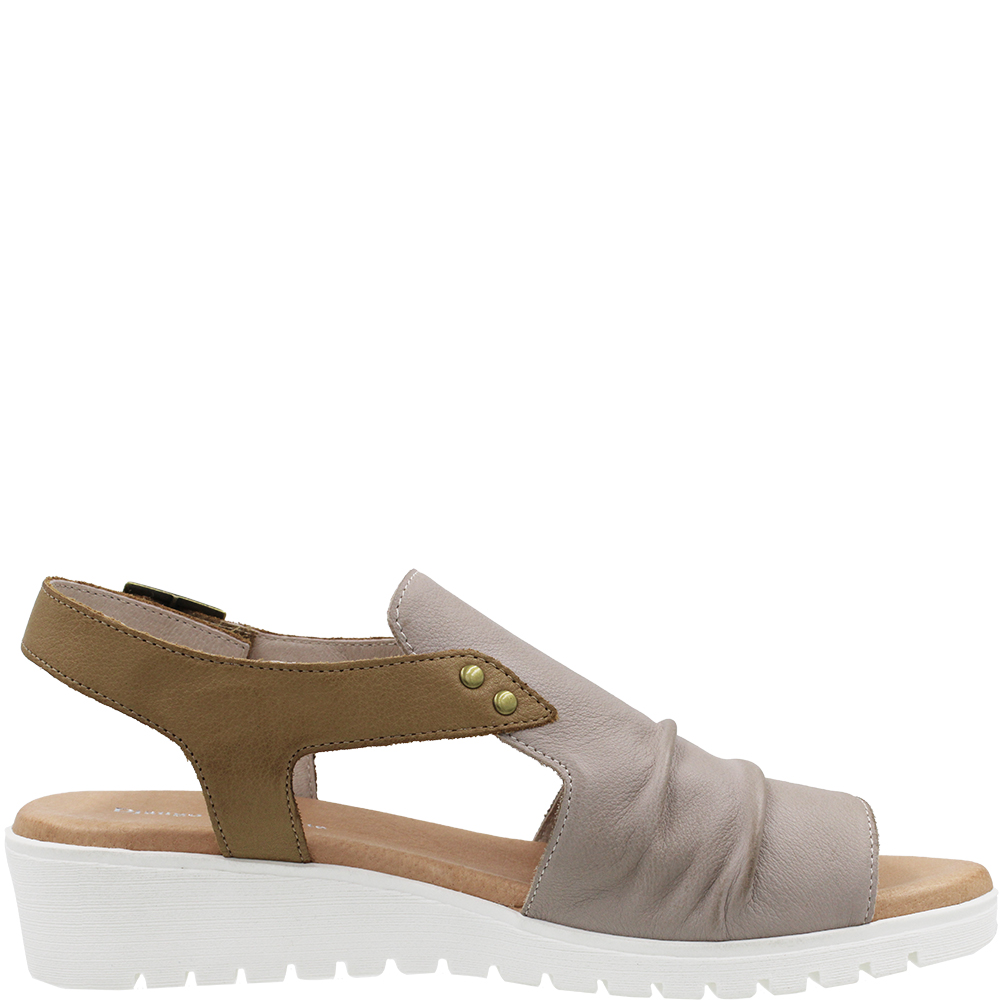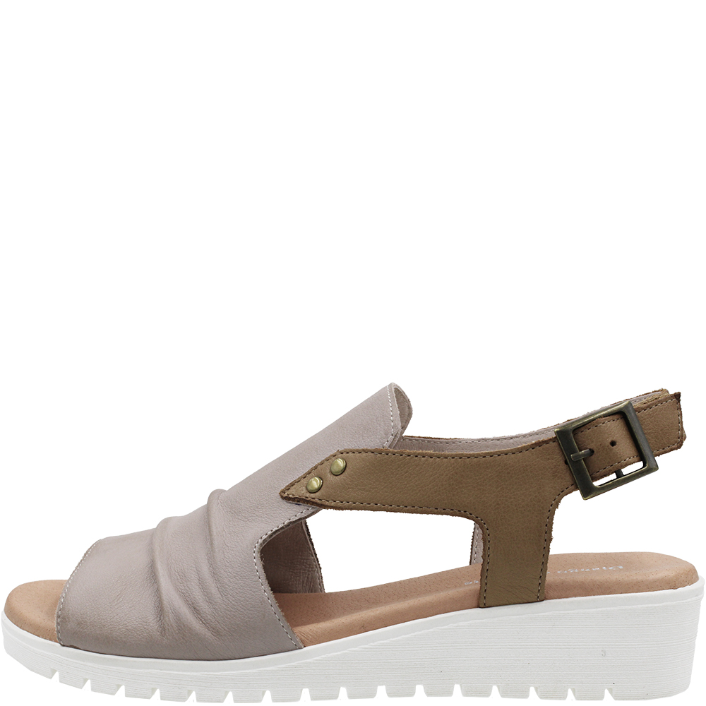 Django & Juliette Madis Cafe Dark Tan Leather Sandals on a wedge, combines invisible comfort with contemporary elegance. On a flexible wedge sole topped with a padded footbed, you get comfort and stability. Bunions are well accommodated in the forepart as there is enough leather to hide them, yet with side and heel cutouts, it also breathes. The rear strap is on velcro for ease of getting on and off, and there is a buckle for even more flexible adjustment. Designed in Australia.