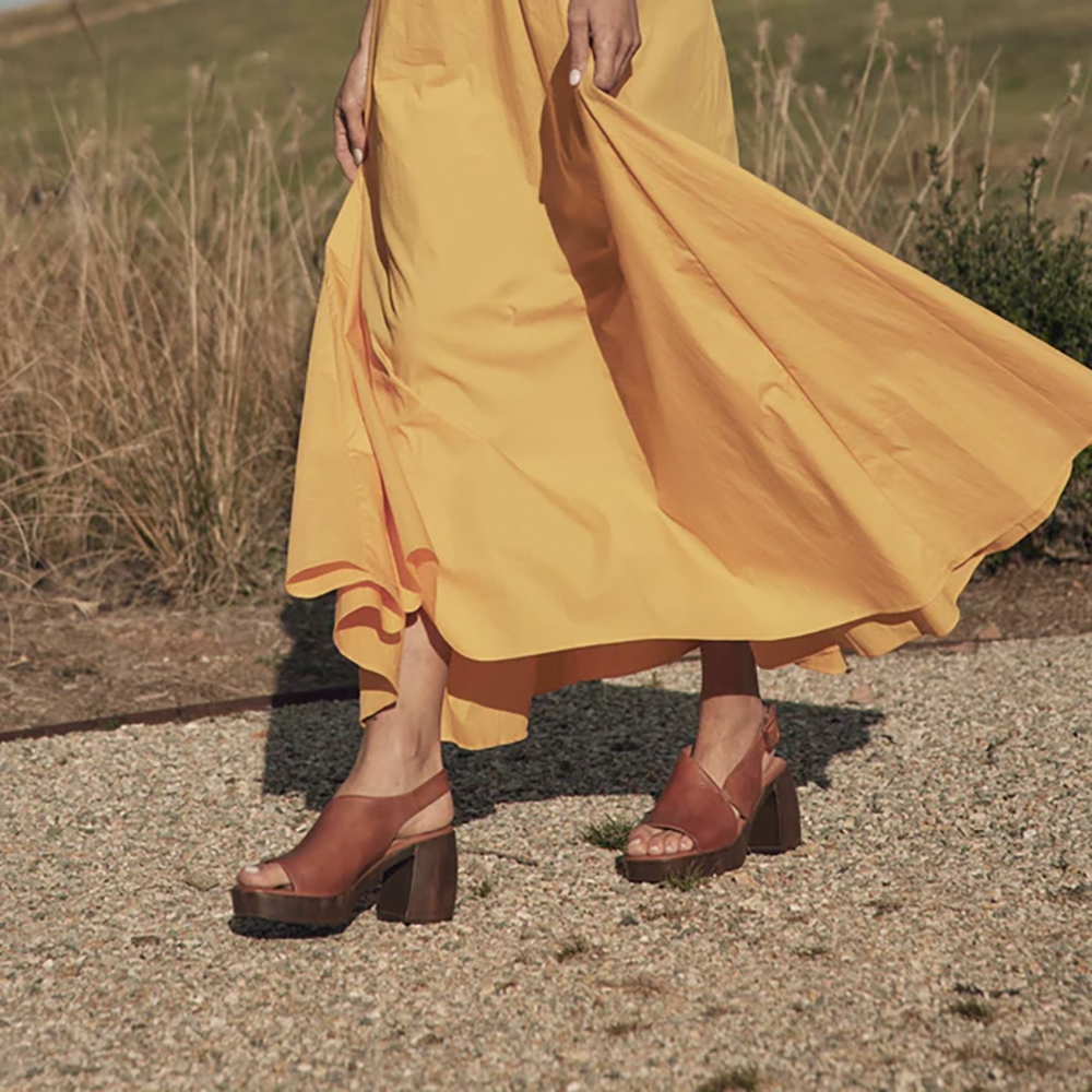 EOS Spicer Brandy Leather Sandals are incredible. Step into sophistication with these bold sandals, where luxury meets comfort. Crafted from luxurious Cashmere leather, these modern heels boast a sleek, minimalist design and a chic slingback detail for a secure fit. Designed with a padded footbed, this open toe style provides exceptional cushioning, making them ideal for all-day wear with a touch of elegance. The platform looks good and takes the ouch out of the height. Designed in Melbourne, Australia