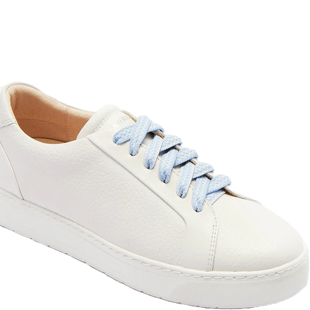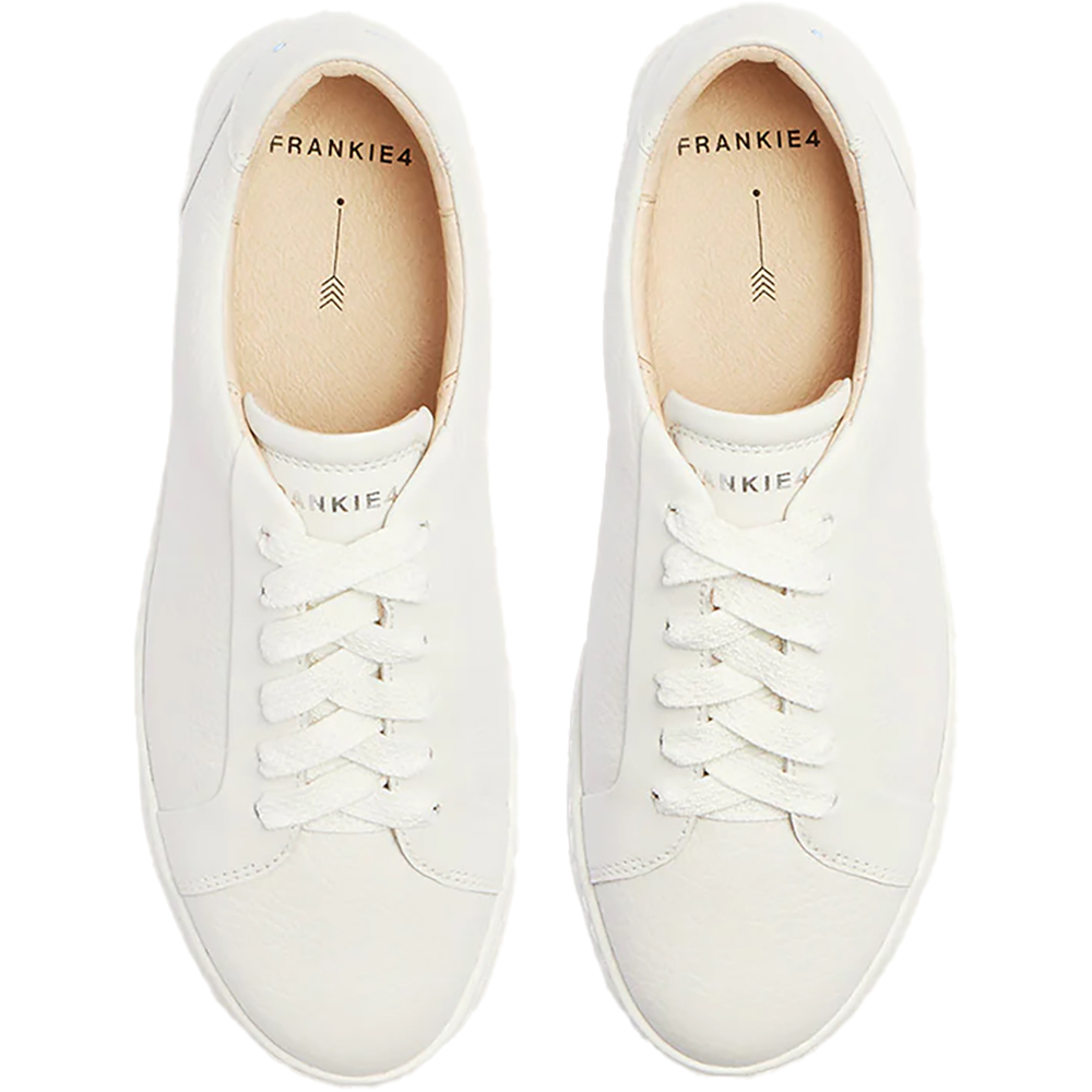 FRANKIE4 Mim V White Tumbled Leather Sneakers are a wardrobe hero. Rich textures and a raised sole bring balance to Mim’s elevated silhouette in versatile White Tumbled. These white sneakers offer a modern twist on a classic, combining essential style with luxurious comfort. Designed as a flatform, Mim features FRANKIE4’S renowned footbed technology, dual-density moulded soles, quality leather finish, and custom fitting options to ensure supreme support for high-rotation wear. The design adds a relaxed, collection-worthy style, making these sneakers perfect for any casual yet refined look. AND there are two pairs of laces, plain white and a blue patterned pair so you can change up the look. Designed in Australia.