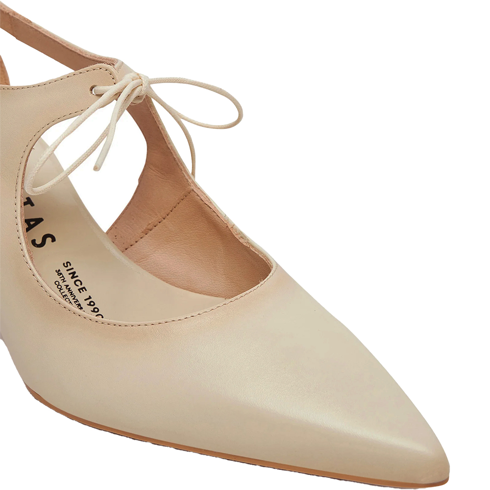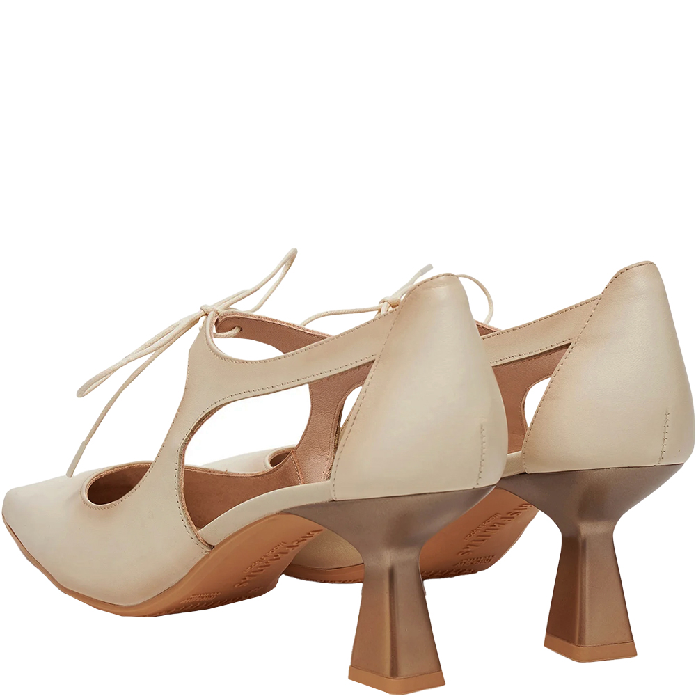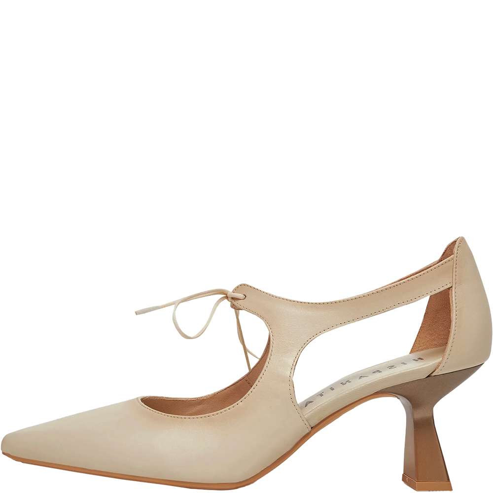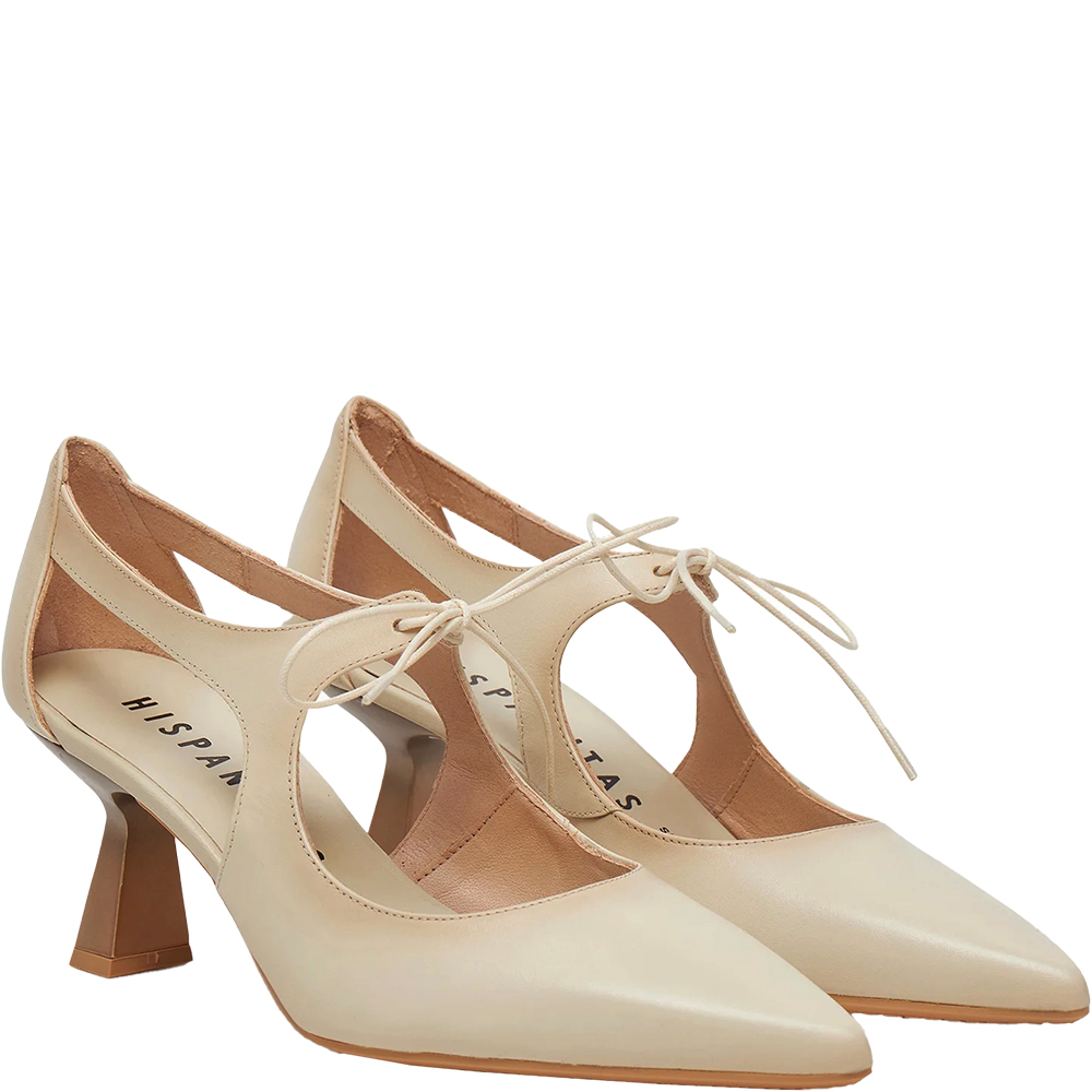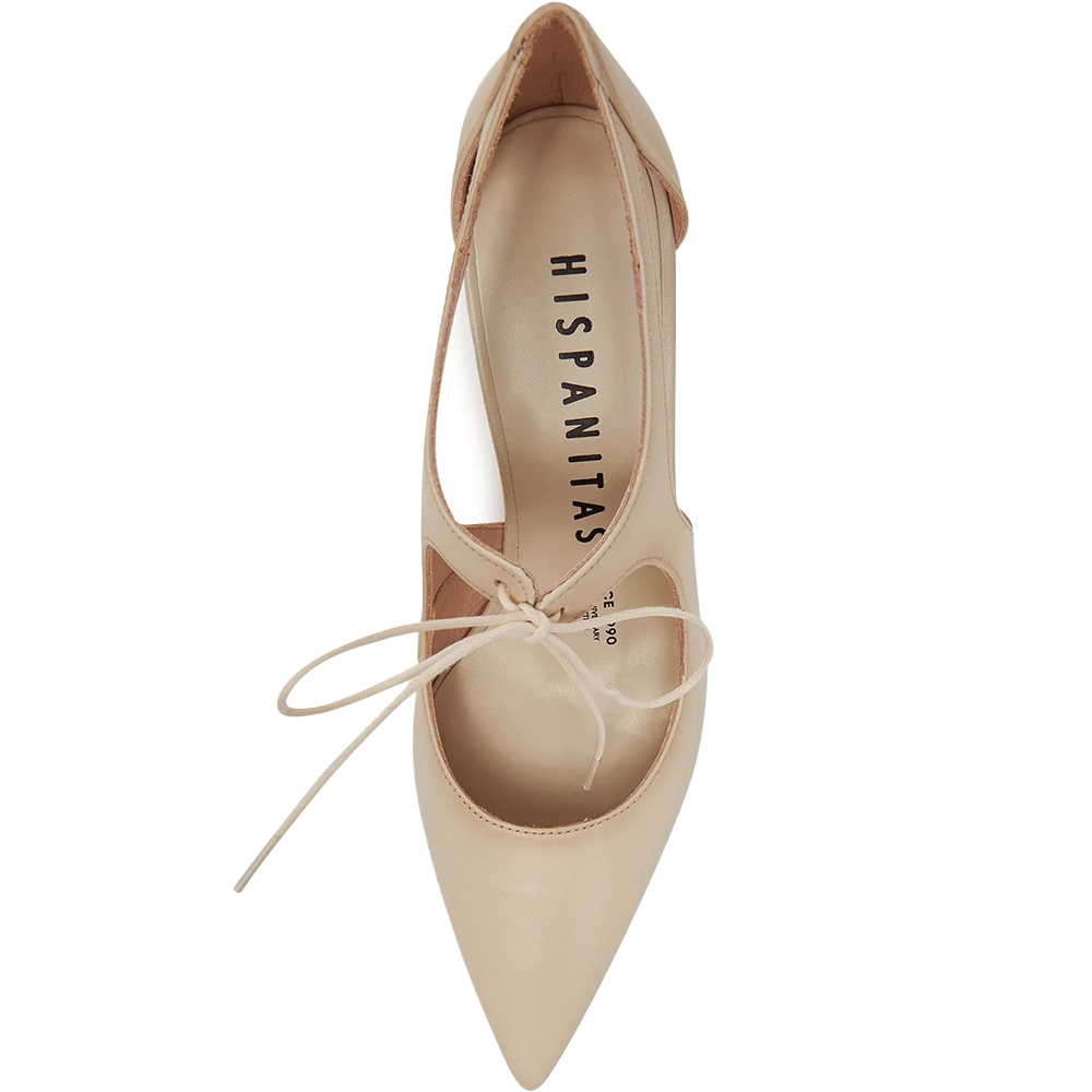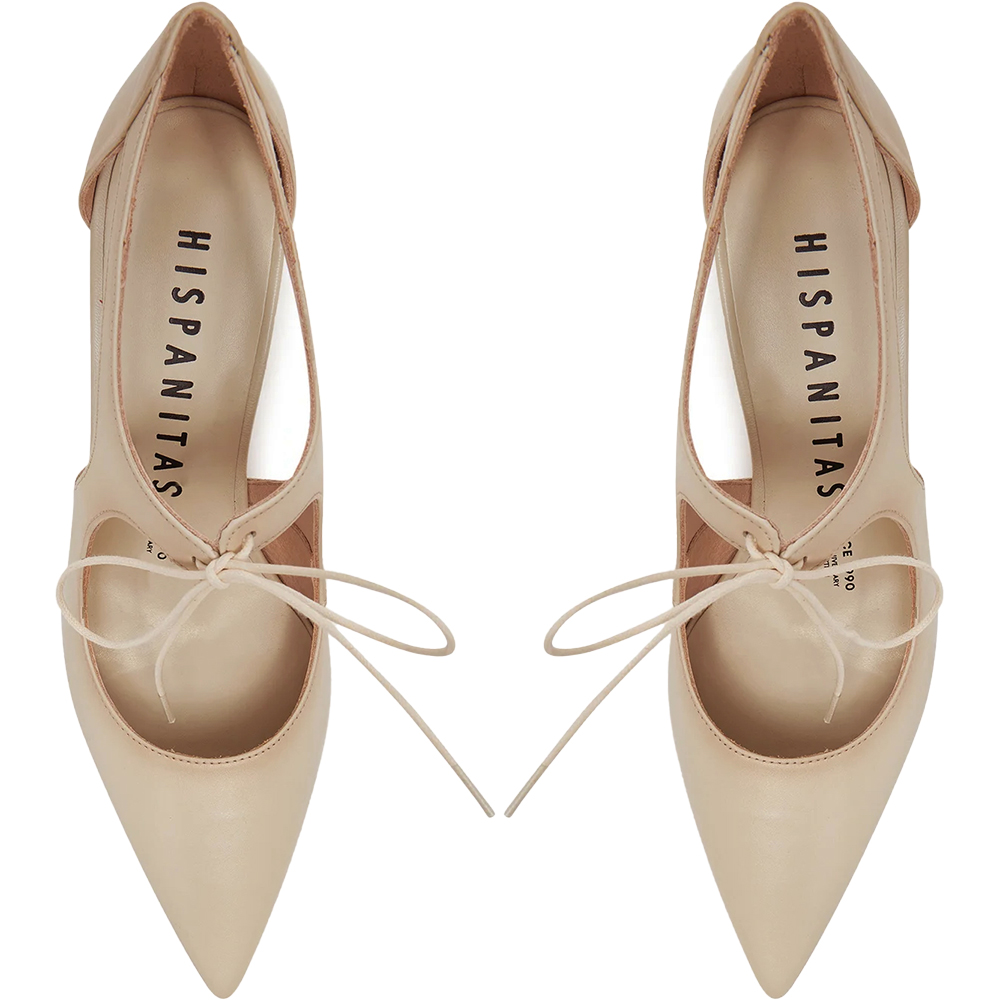 Hispanitas Nova Taupe Mary Jane Pumps HV253934 are a supremely elegant shoe. Crafted from supple lightly burnished leather, she features a tie up lace detail over the instep, perfectly cut pointed toe and is open waisted to show some skin. Being open waisted, there is a lot of air flow. Triple padding underfoot thanks to TRIFLOW technology provides comfort for all day wear with every step. The sculptural mid heel is grass friendly for outdoor events. Handmade in Spain.