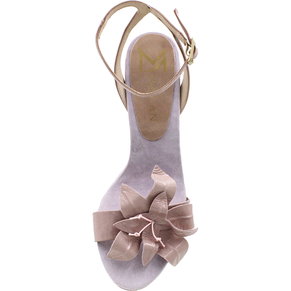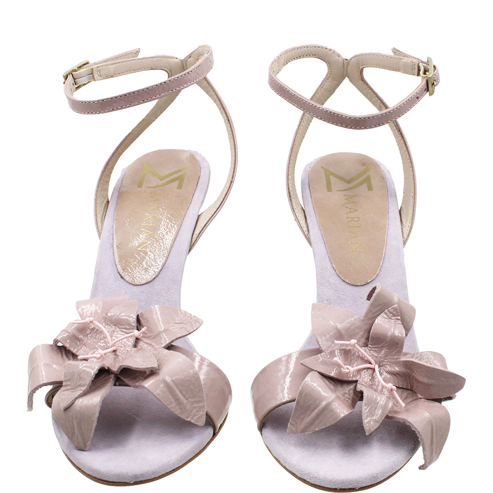 Marian Blush Patent High Heel Sandals 58206 are gorgeous. Perfectly pitched on a modern lightly flared stiletto heel, she secures with a buckle around the ankle with a super slim strap. Open toed, the forefoot band is adorned with a delightful flower motif which not only looks beautiful, but also hides alot of the toes. Beautifully padded for comfort, these high heel dress sandals are sure to stun. Event ready! Handcrafted in Spain