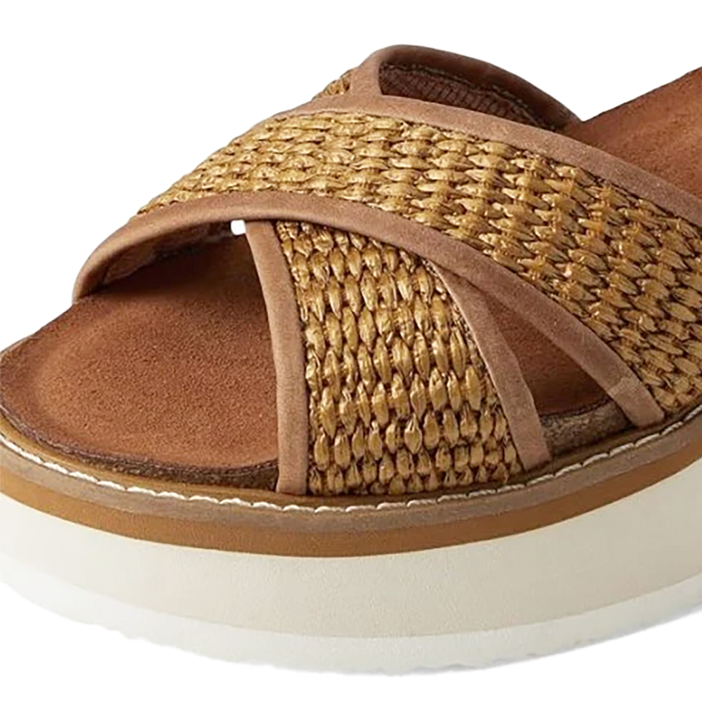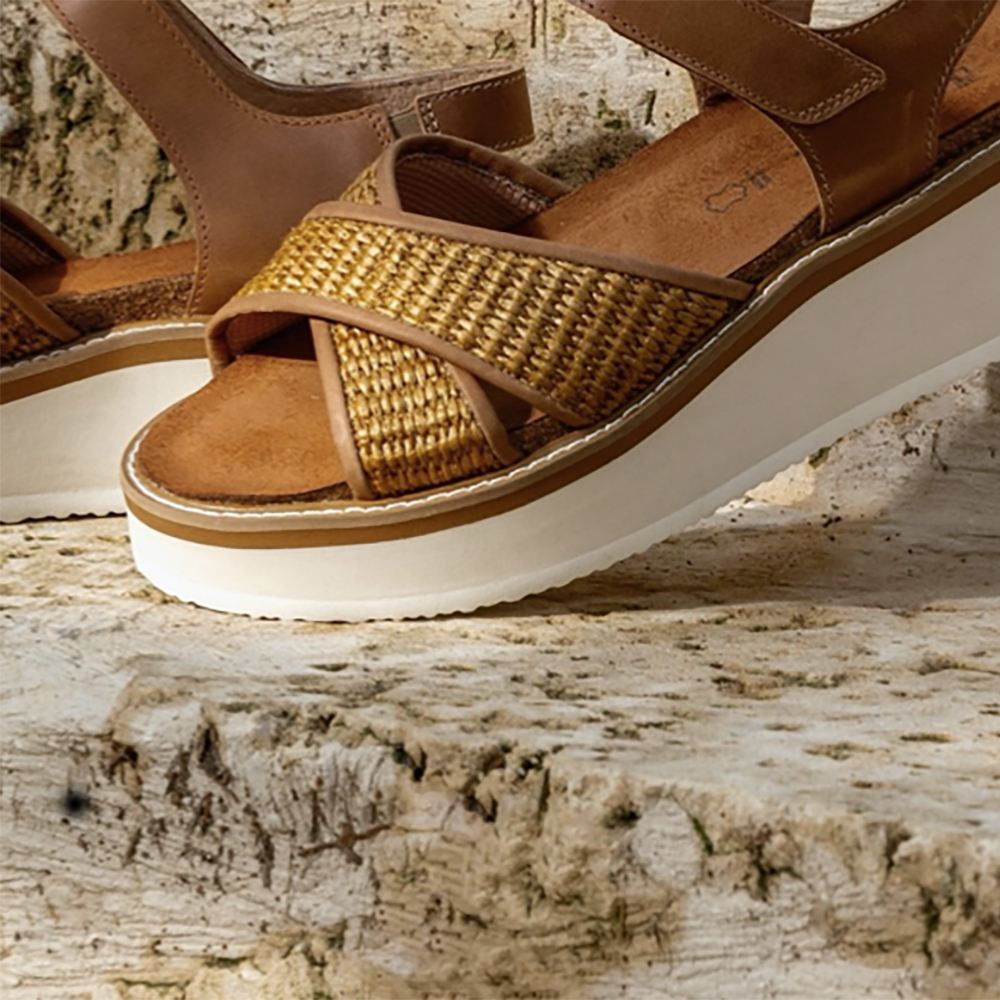 Naot Pavlova Brown Combo Platform Sandals are a totally new style for Naot. Featuring a stylish platform design, Pavlova showcases raffia-accented front straps that add a touch of natural charm. The sandals are equipped with a velcro strap for effortless on/off convenience, ensuring both style and practicality. Perfect for all-day wear, Pavlova promises to elevate your look with its blend of sophistication and comfort. Crafted with Naot’s anatomic cork and latex footbed wrapped in pampering suede, these shoes mould to the shape of your foot with wear, ensuring personalised comfort. Part of Naot’s Tiramisu Collection.