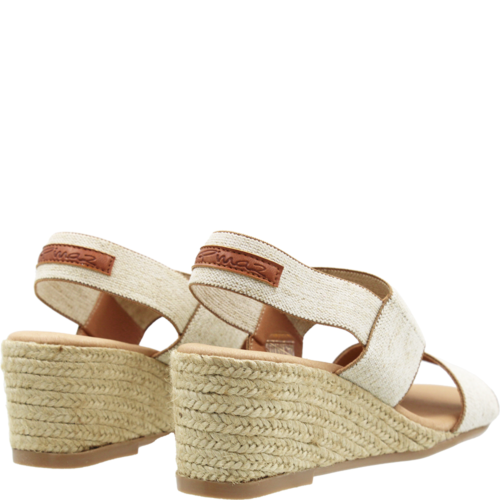 Pinaz Linen Espadrille Wedges 531/5 feature two thick bandsĀ which hold the toes and foot in check, while the the slingback strap supports you in back. The instep and slingback straps are elasticated for a firm yet flexible fit. Nicely pitched and beautifully padded underfoot. The mid height wedge sole is wrapped with natural jute using traditional techniques. These open toe sandals are summer ready. Handcrafted in Spain.