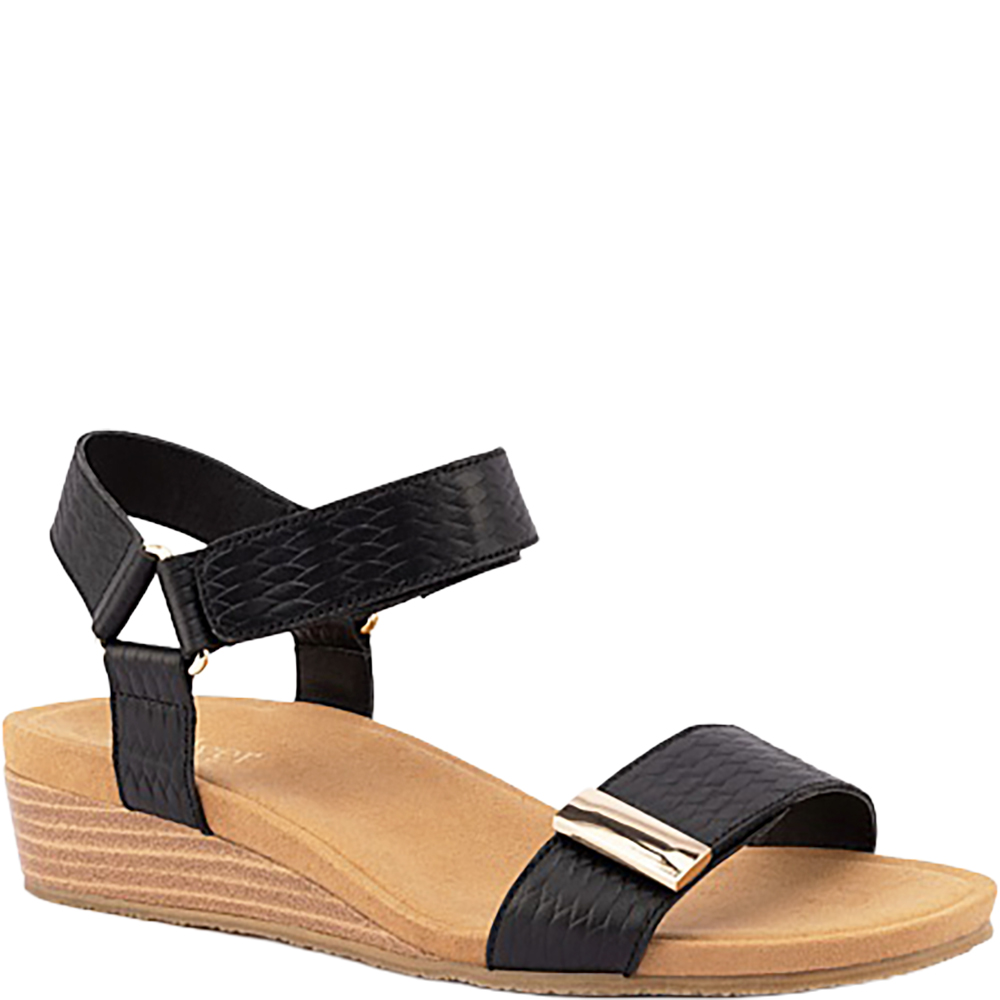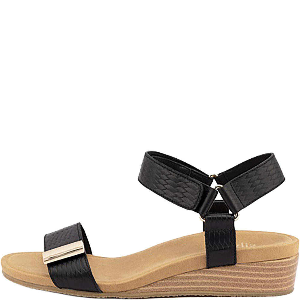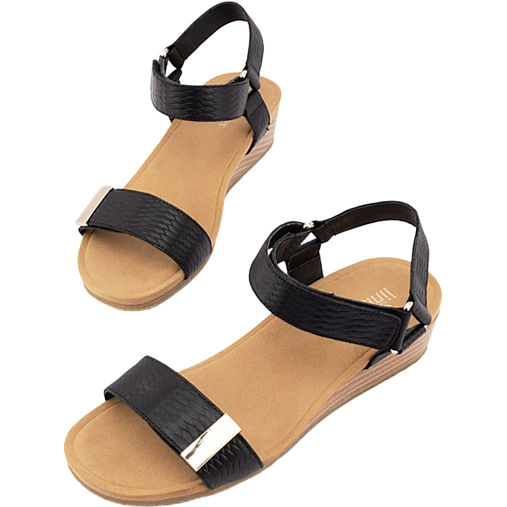 Silver Lining Utica Black Embossed Sandals is a bold wedge sandal, made from soft leathers. Your foot well be held well in place thanks to the well placed adjustable forefoot and ankle straps. Plus there is arch support and amazing cushioning under the suede sole lining. Set on a wood veneer wedge heel. The textured effect on the leather upper adds subtle interest, the pale gold hardware adds luxe. Designed in Australia
