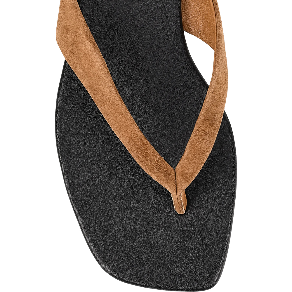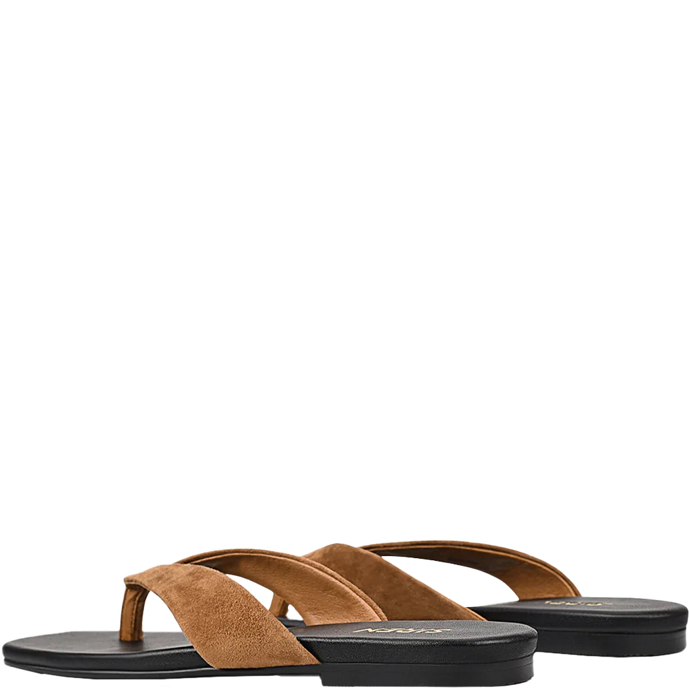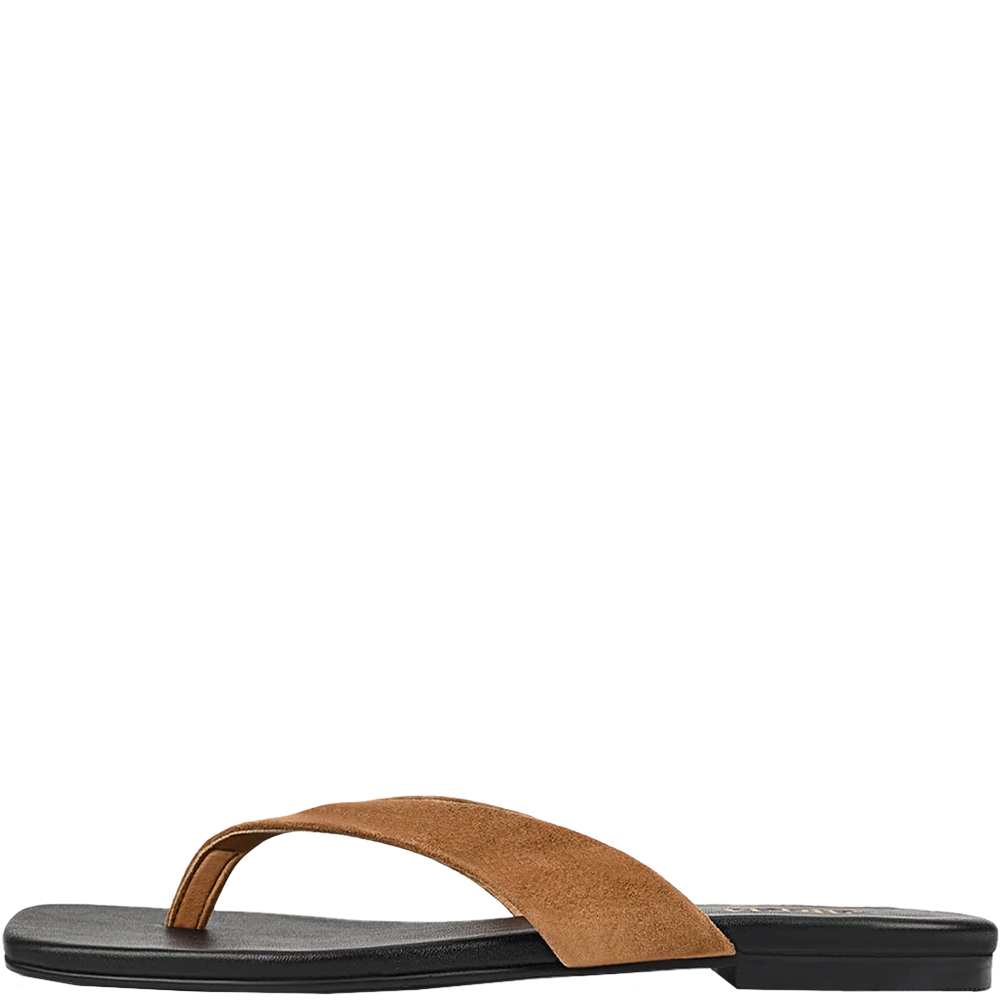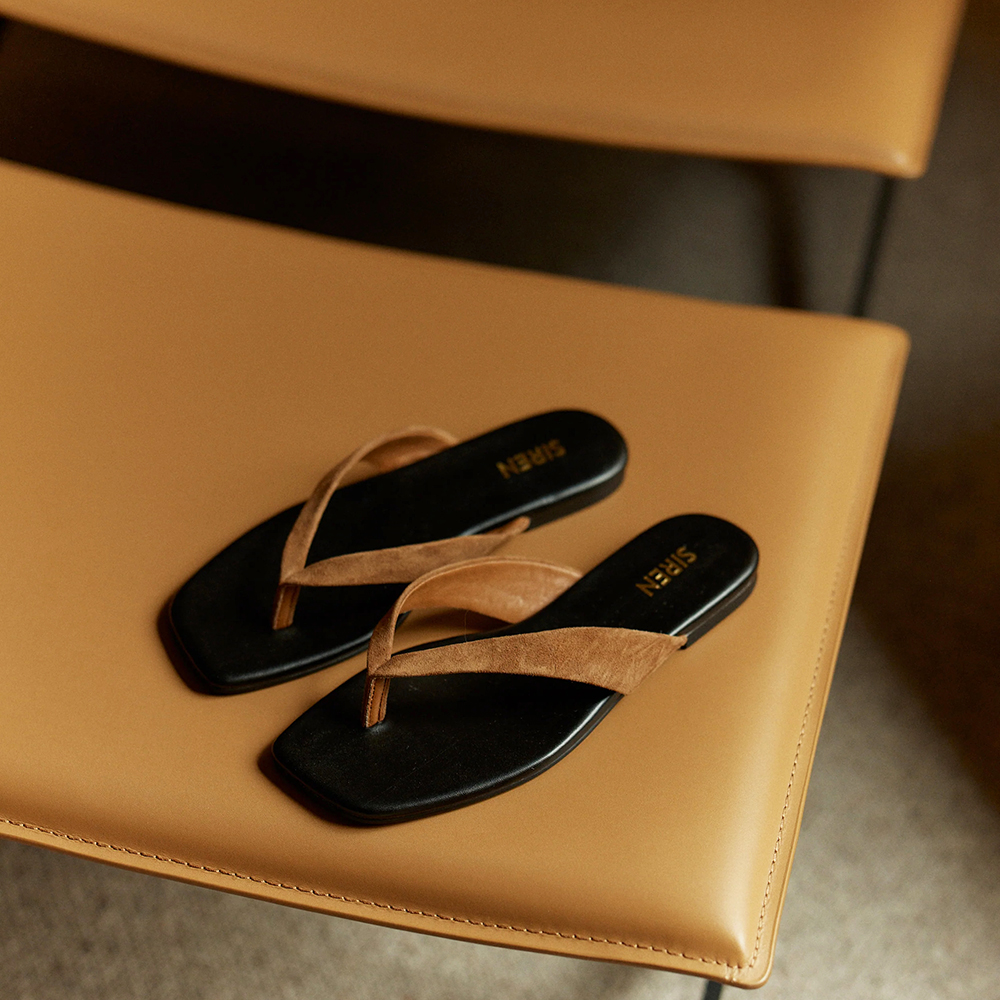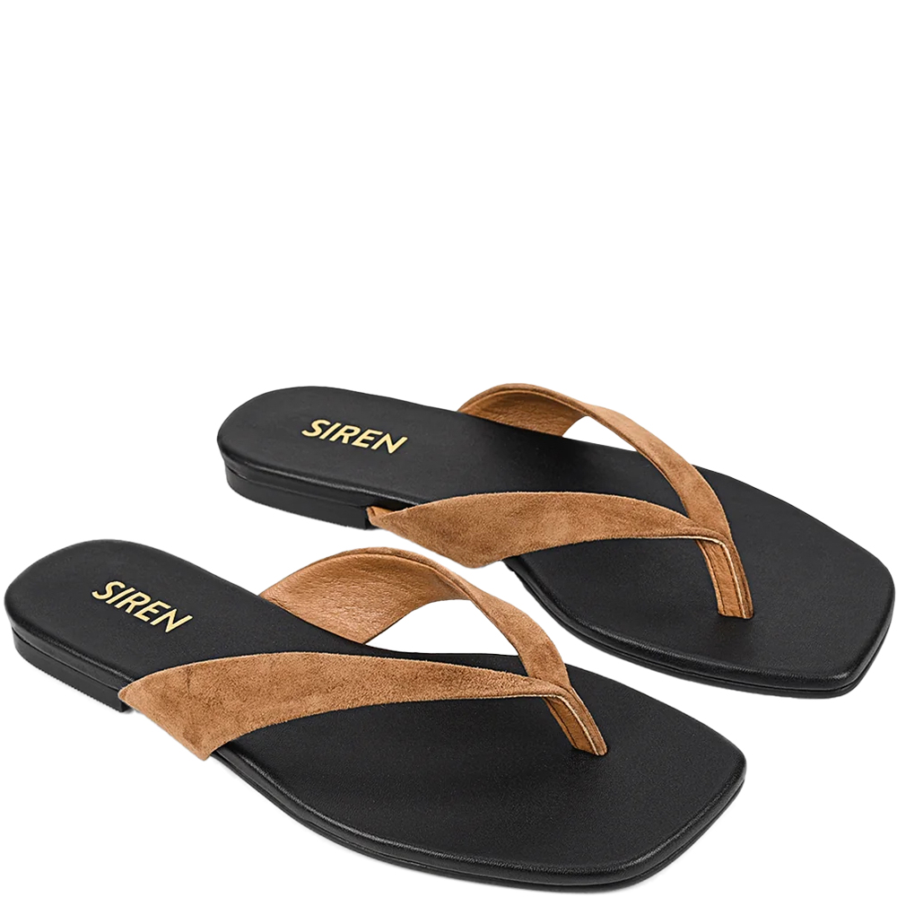 Siren Evita Tobacco Brown Flat Thongs are a wardrobe essential. Understated, but far from basic — Evita is your thong slide elevated. This square-toe thong slide features sleek, sculpted tan-coloured suede straps and a minimalist silhouette that blends effortlessness with edge. A refined staple for sun-drenched days and off-duty styling. Designed in Australia by Siren Shoes.