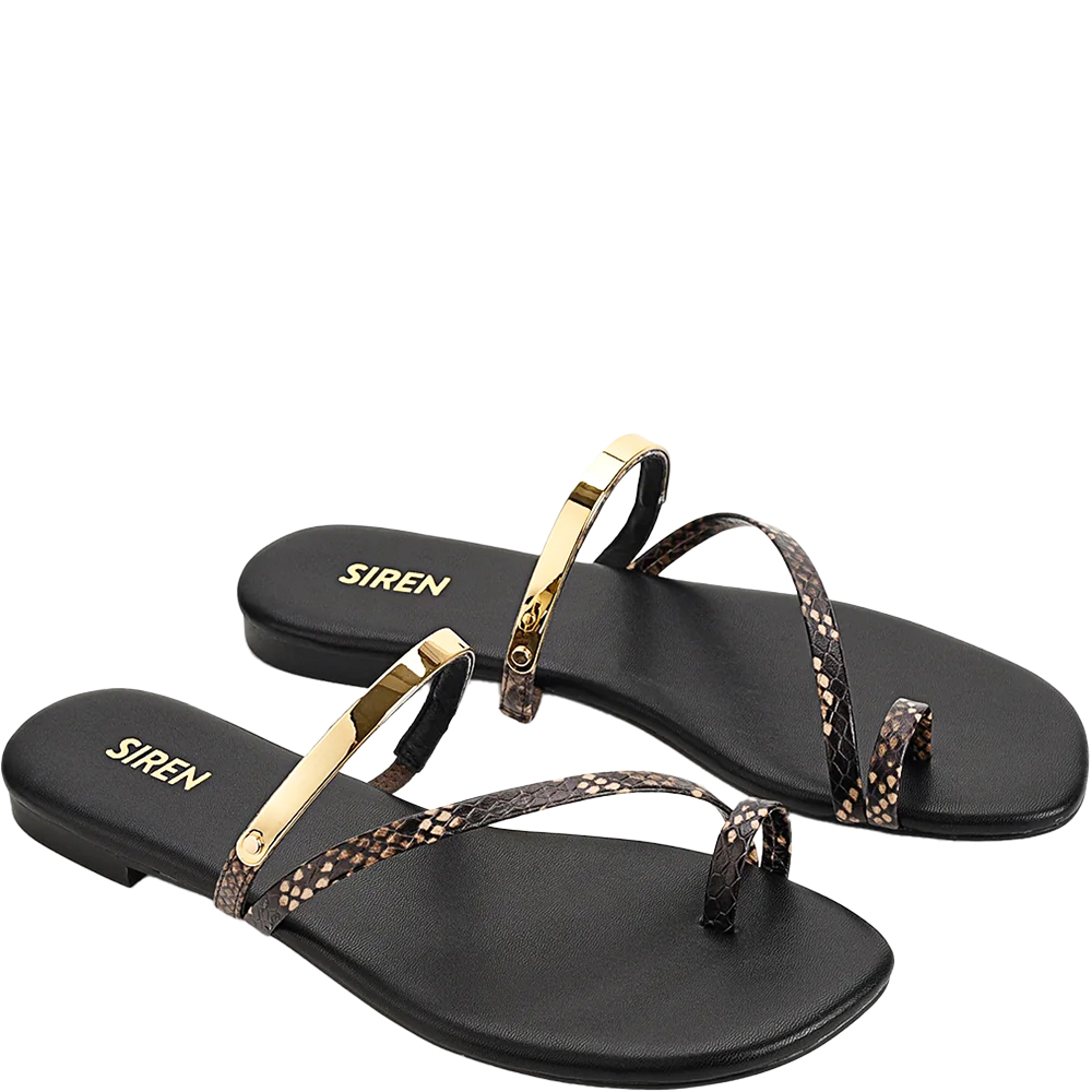 Siren Miles Brown Snake Thong Slides are where simplicity meets luxe appeal. This modern flat sandal features sleek, minimalist straps accented by a statement metallic bar, bringing an elevated edge to any summer ensemble. Slip her on for days when you want comfort without sacrificing polish. Pair Miles with sun-drenched linen sets or floaty dresses for effortless, golden-hour glamour. Designed in Australia by Siren Shoes.