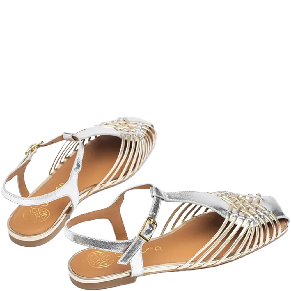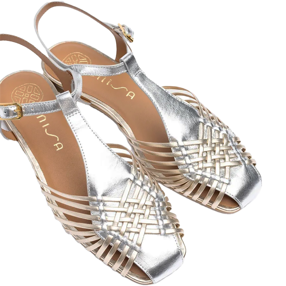 Unisa Babic Silver Platino Flat Sandals are a must-have. The toe-box of this flat Mary Jane sandal is constructed of uber-soft woven leather which is perfect to accommodate problem areas like bunions or wide feet with ease. The slim ankle strap secures you for the perfect fit. Padded underfoot for comfort and all this sitting on a mini block heel for the perfect hint of lift. A day to day staple realised in metallic silver and pale champagne gold leather for a casual look with luxe. Made in Spain.
