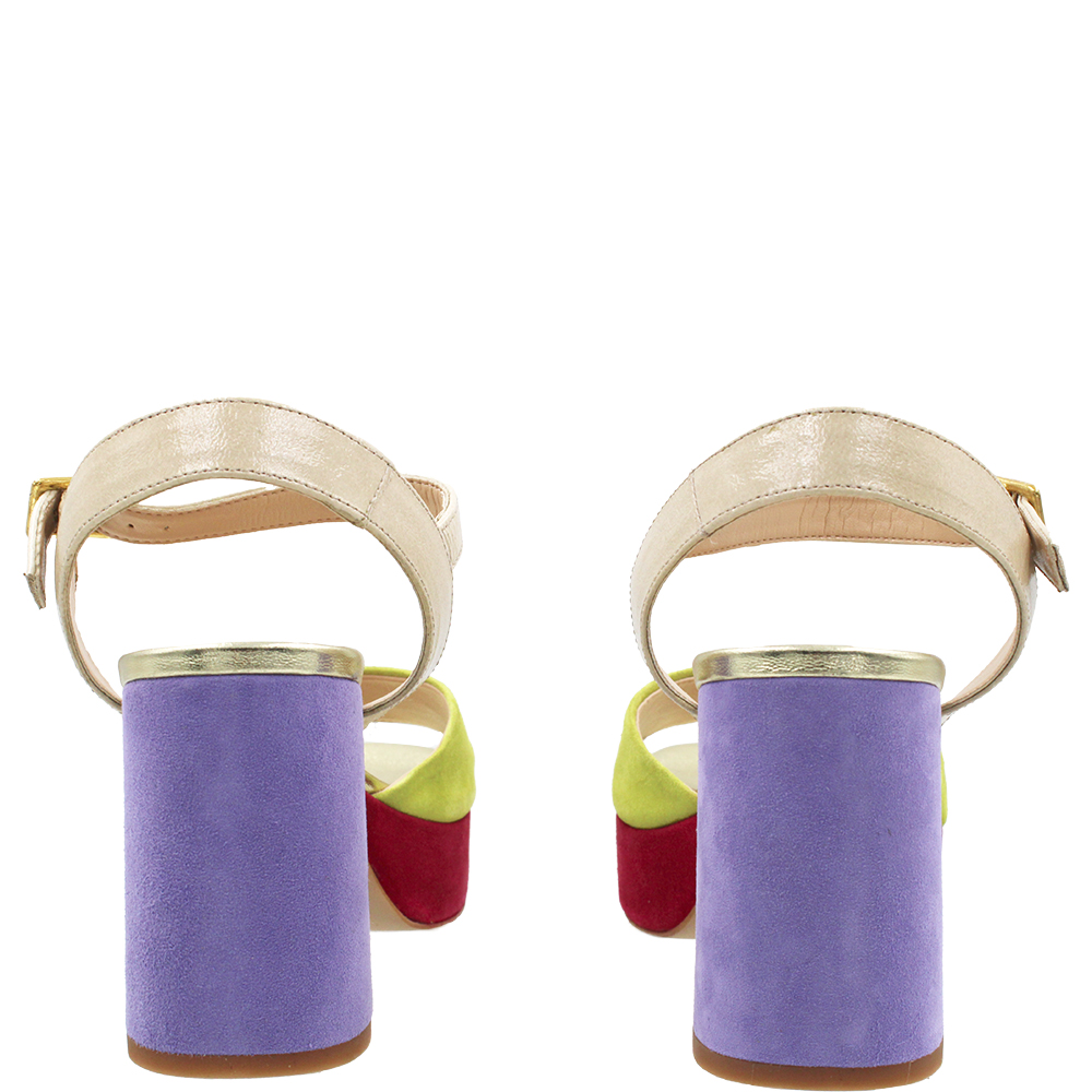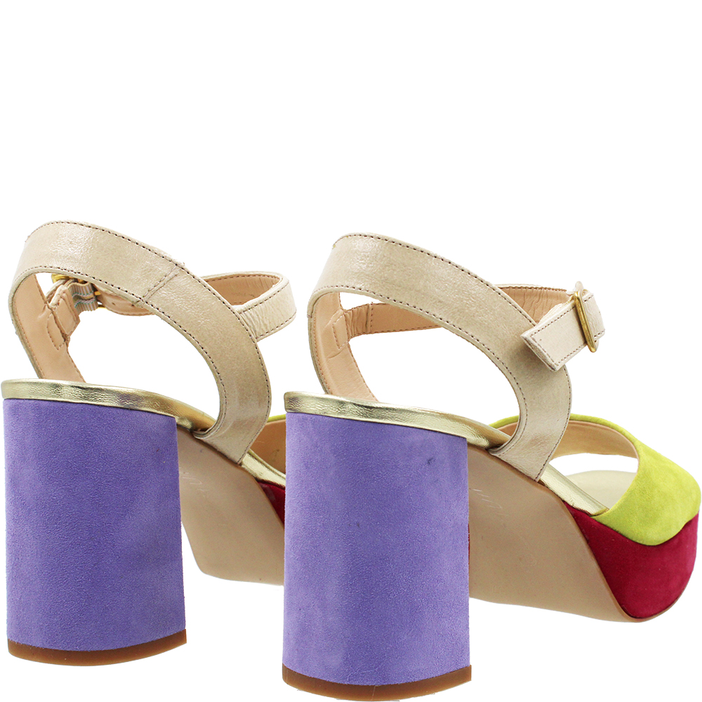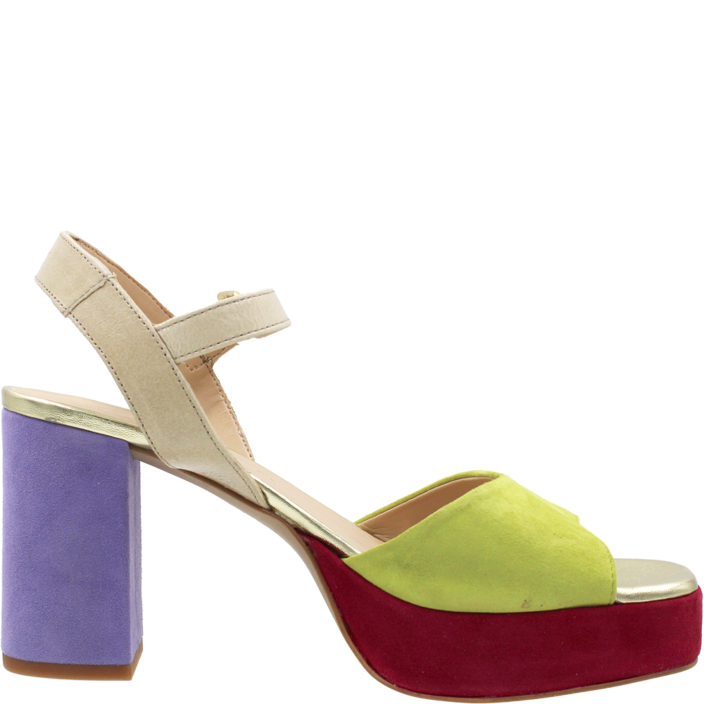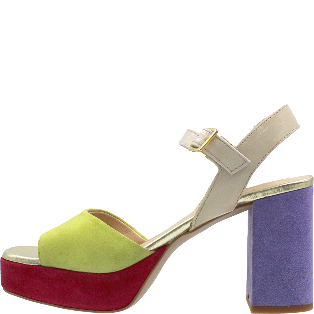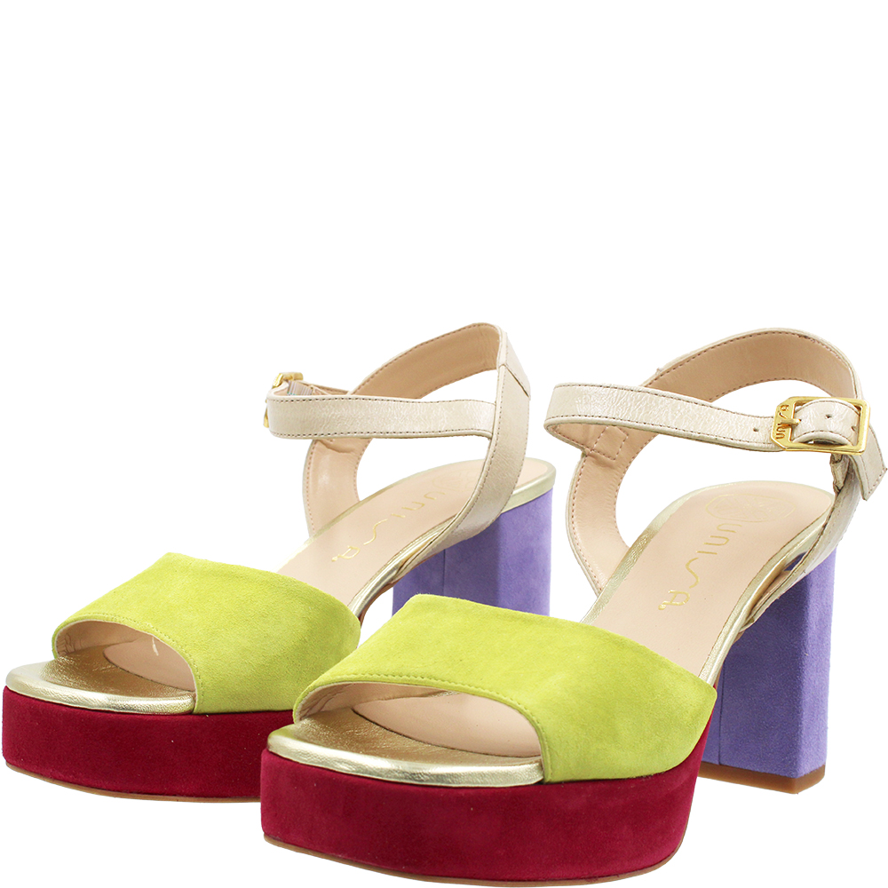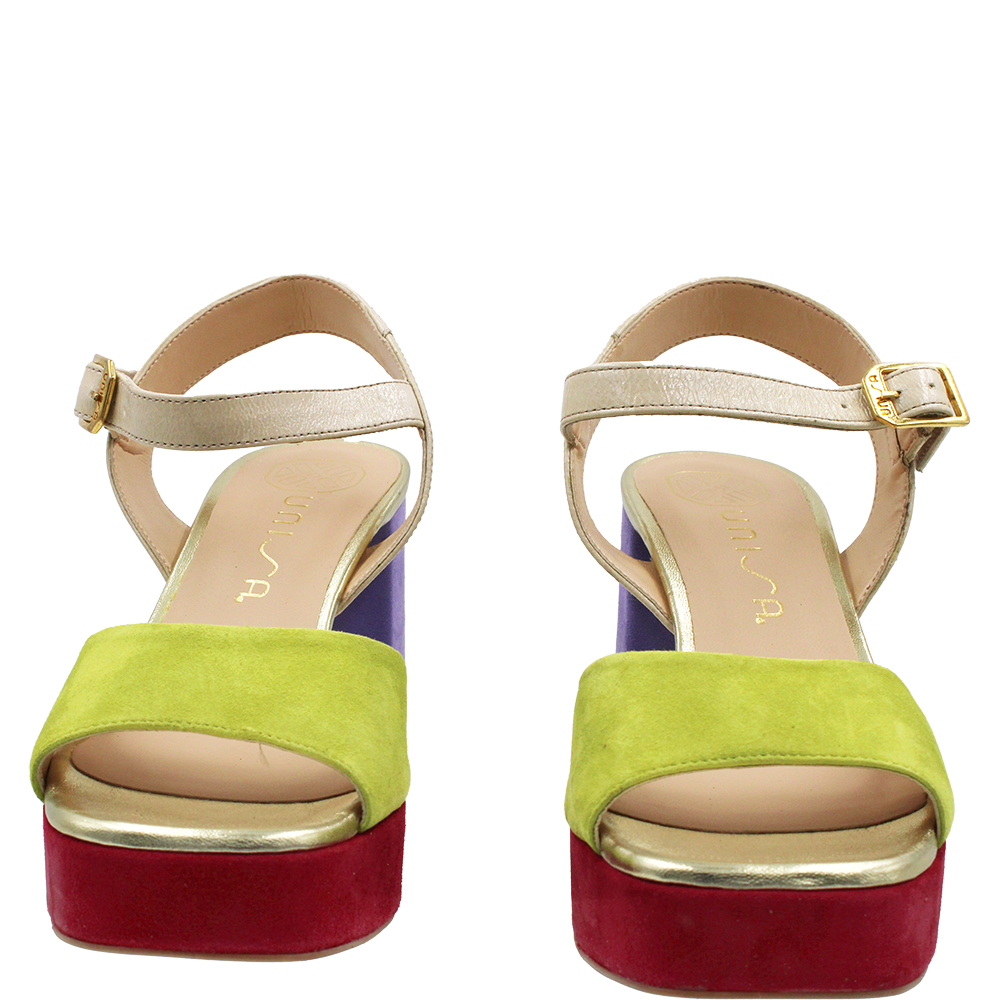 Unisa Odran Tropic Multi Suede Heels will WOW! Crafted from a medley of lilac, chartreuse and burgundy suede with neutral patent and gold metallic accents, Odran’s beautifully cut forefoot holds you in place. You’ll love the fit thanks to the adjustable ankle strap… These open toe dress sandals are perfect for outdoor events and are padded for comfort. Add height thanks to the platform and a modern block heel and what do you have?… Wearable luxury! Handcrafted in Spain