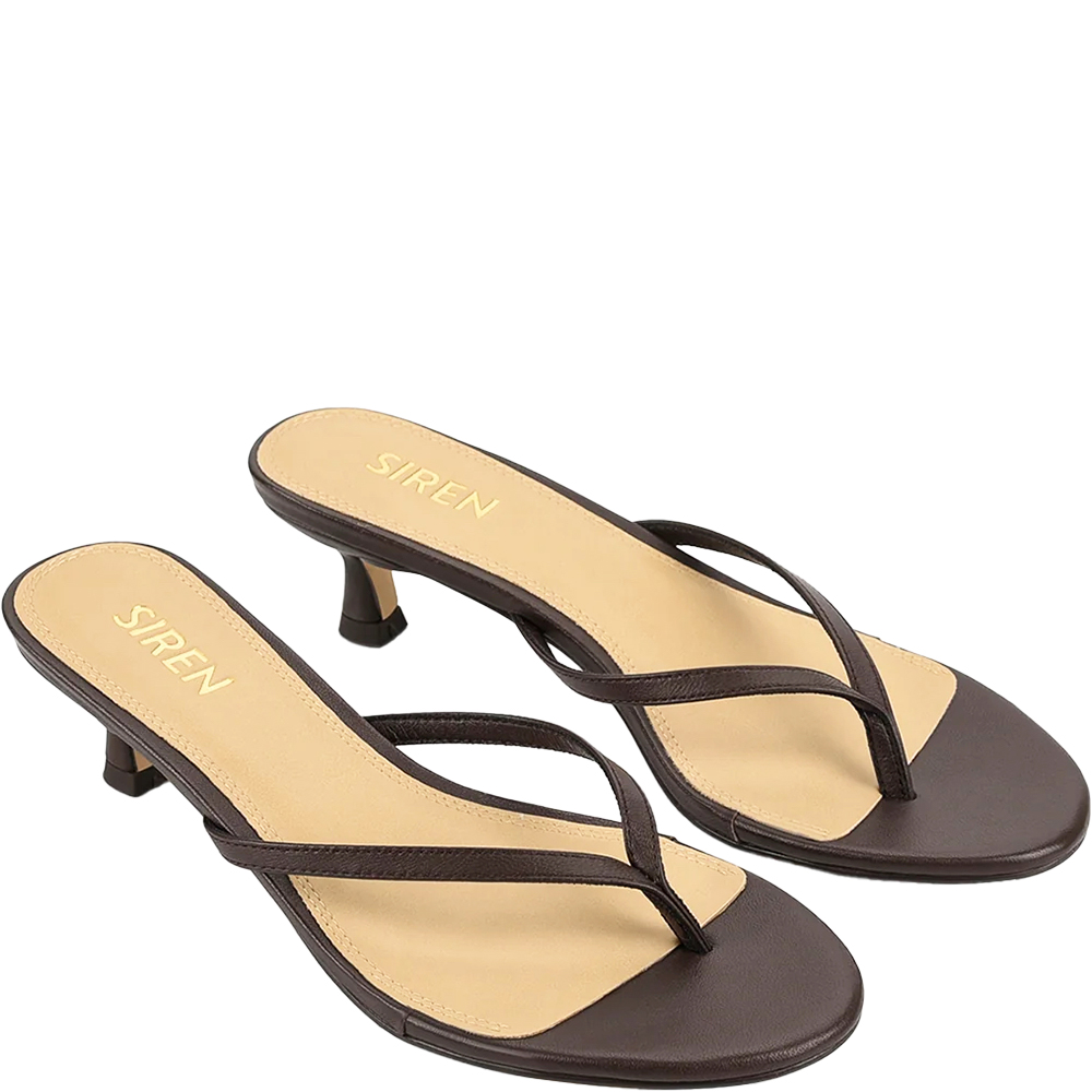 Siren Xabi Chocolate Brown Kitten Heel Thongs are your modern muse for sleek summer dressing. Crafted with slim, minimalist straps and set on a chic kitten heel, this sandal is the epitome of understated elegance. Perfectly balanced between casual and refined, Xabi transitions effortlessly from day to night. Style her with linen separates or slip dresses for an elevated, barely-there finish. Designed in Australia by Siren Shoes.